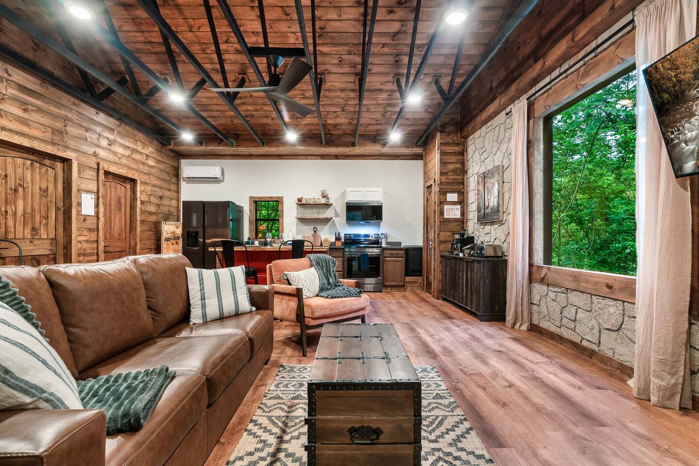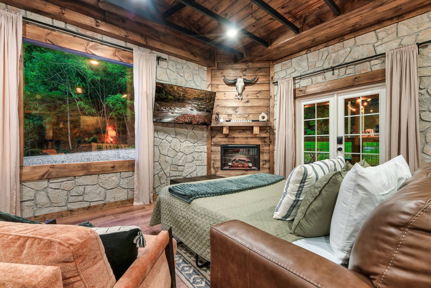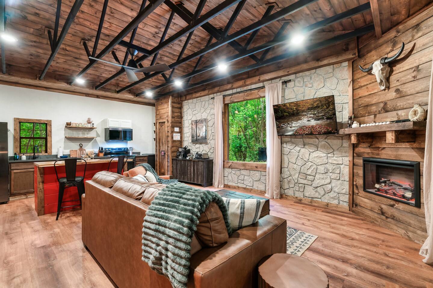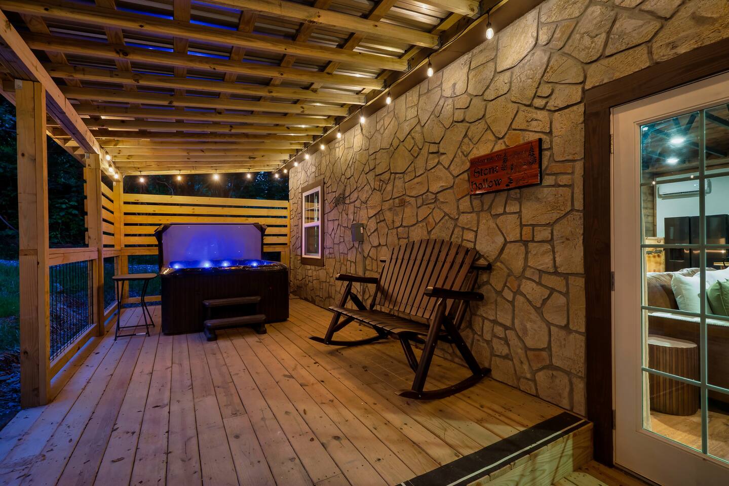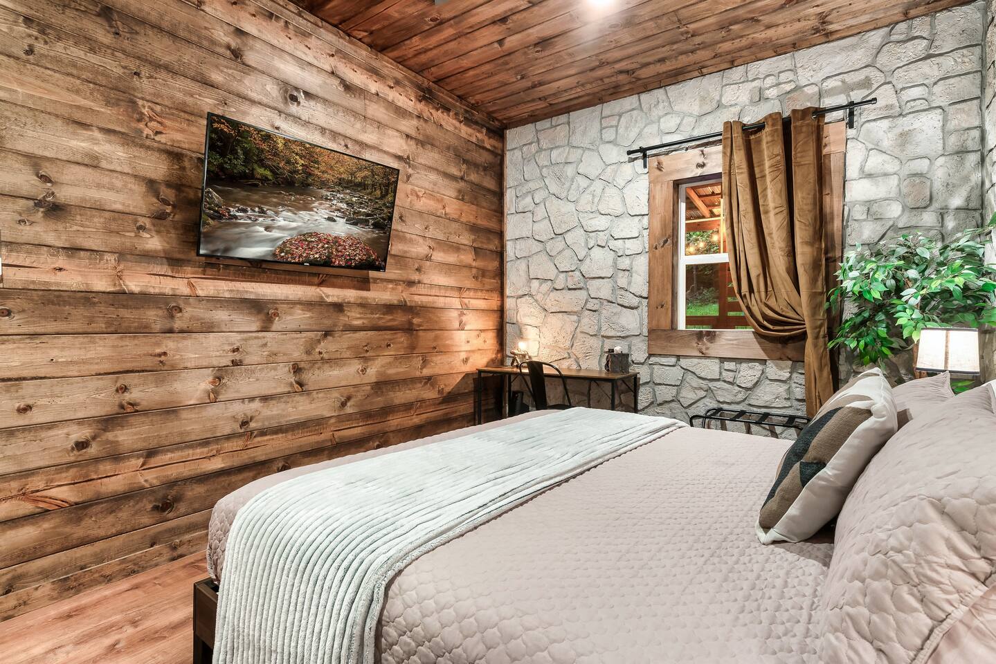 🏠🌲 Welcome to Stone Hollow! 🌲🏠 Our cozy cabin is perfect for a romantic getaway, a small family vacation, or a fun trip with friends. Just a short drive from Dollywood, this charming retreat offers the perfect blend of adventure and relaxation. Unwind in the hot tub after a day of exploring, challenge each other in the arcade, or gather around the fire pit under the stars. With a king-size bed and queen pull-out, our one-bedroom cabin provides a comfortable and memorable stay. ➡️ ENTERTAINMENT 🏊 Private 2 Lounger Hot Tub 🔥 Outdoor Fire Pit (BYO Firewood) ♨️ Park-Style Grill (BYO Charcoal) 🕹️ Multicade 🎲 Board Games 📺 Smart TVs 📶 High-speed Wi-Fi (600 Mbps) ➡️ LIVING ROOM 🛏️ 1 Queen Pull Out Couch 🔥 Electric Fireplace 📺 55" Smart Roku TV ❄️ Brand new AC/heater split unit 🍼 Pack 'n Play ➡️ BEDROOM 🛏️ King Bed 💼 Desk 📺 50" Smart Roku TV 👕 Garment Rack with hangers 🧳 Luggage Rack ♨️ Space Heater ➡️ KITCHEN 👨🍳 Fully equipped with pots, pans, dishware, and cooking utensils ☕ Coffee Station ✨ Keurig Coffee Machine ✨ Drip Coffee Machine ✨ Pour Over ✨ Italian Coffee Machine ✨ We do provide a starter kit of K-Cups, Instant Coffee, Ground Coffee, and Sugar. ➡️ BATHROOM 🛁 Shower/Tub combo 🧺 Washer/Dryer 🥌 Iron & Iron board ✨ Hair Dryer ✨ Essentials