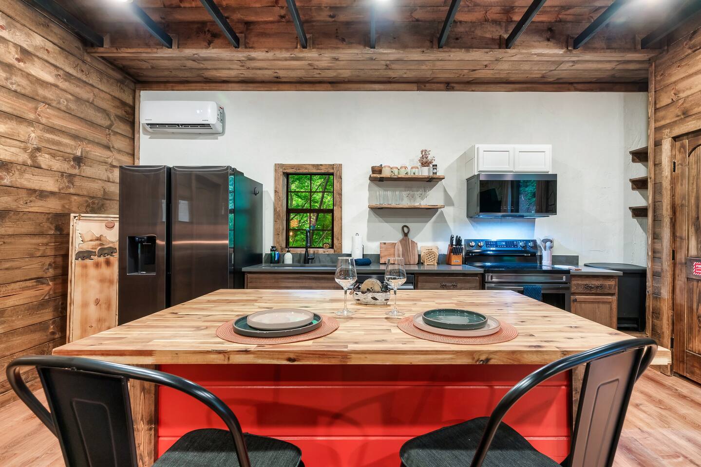 🐶 2 DOGS MAXIMUM $99 per stay per dog. Please contact us if you'd like to inquire about bringing more than two dogs. Dogs are not allowed on the bed and couch. Dogs are not to be left alone without a crate. NO PETS OTHER THAN DOGS ALLOWED. 🐻 DANGEROUS WILDLIFE 🐻 The Smoky Mountains has black bears, northern copperhead snakes, timber rattlesnakes, wild boar, bobcat, and- although not 100% verified- it is widely believed there are some ultra-elusive mountain lions that make their way through the night woods! The snakes can be poisonous but not deadly, and bears are always avoidable with good decision making. NEVER enter the woods at night, and educate yourself on how to act around a bear or other dangerous animal. 🛡️ There is an outdoor camera towards the driveway for the security of everyone. ⚠️ Refunds are not provided for disruptions due to weather, natural disasters, power outages, or other events beyond the host's control. Guests are strongly advised to purchase travel insurance. Sevier County License #1001586827