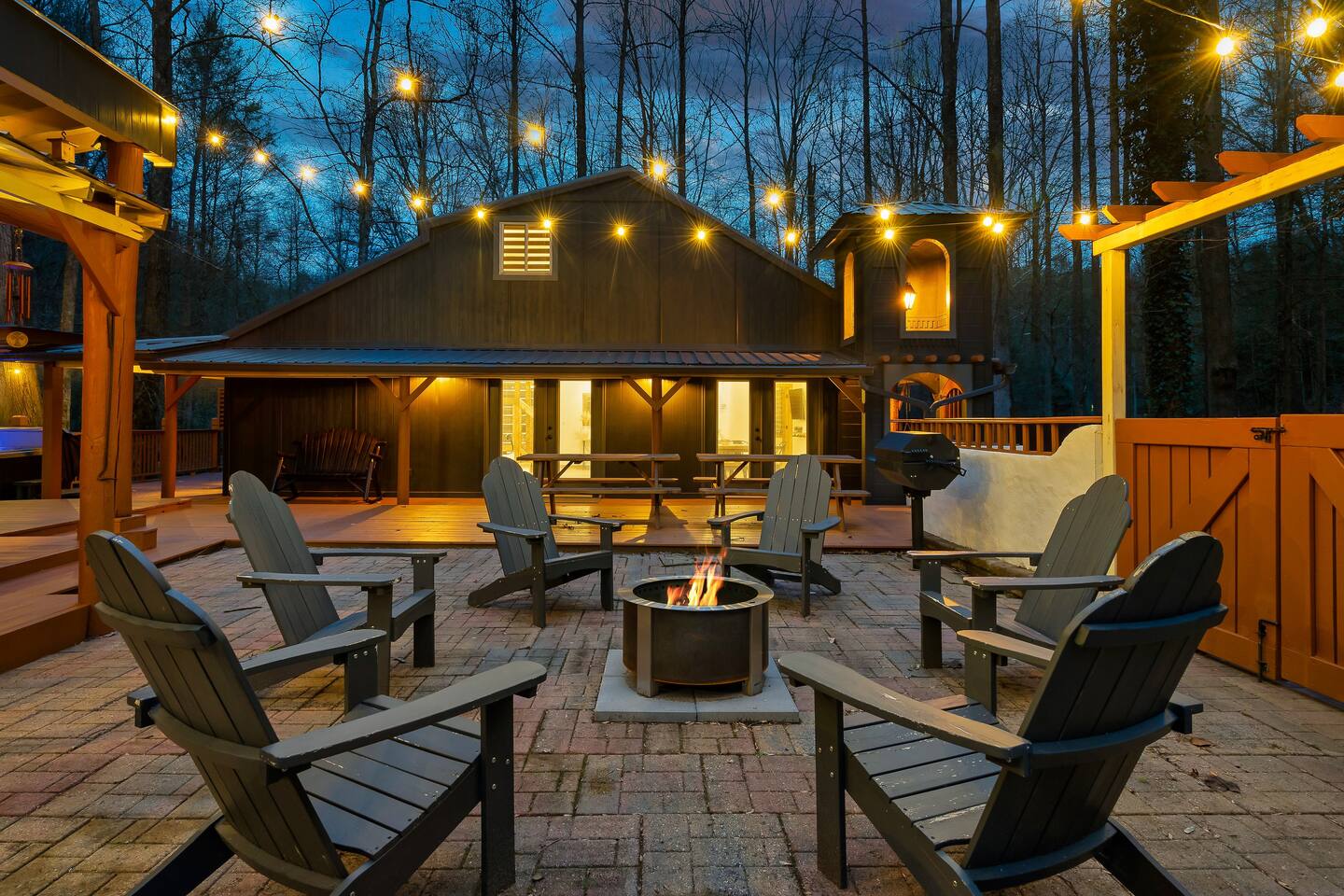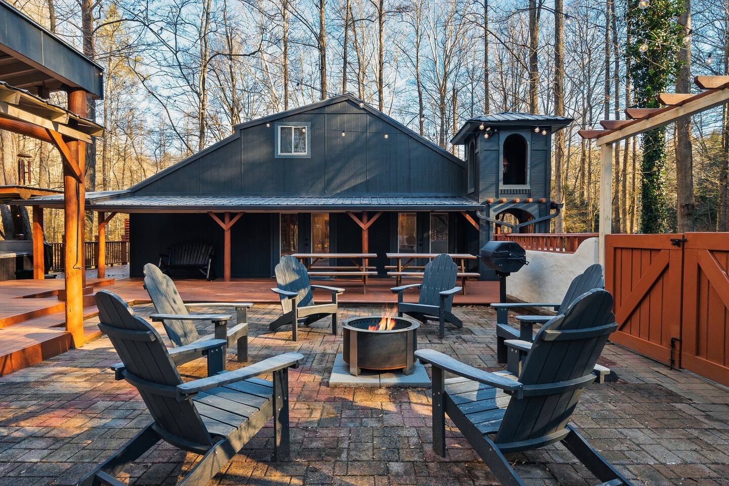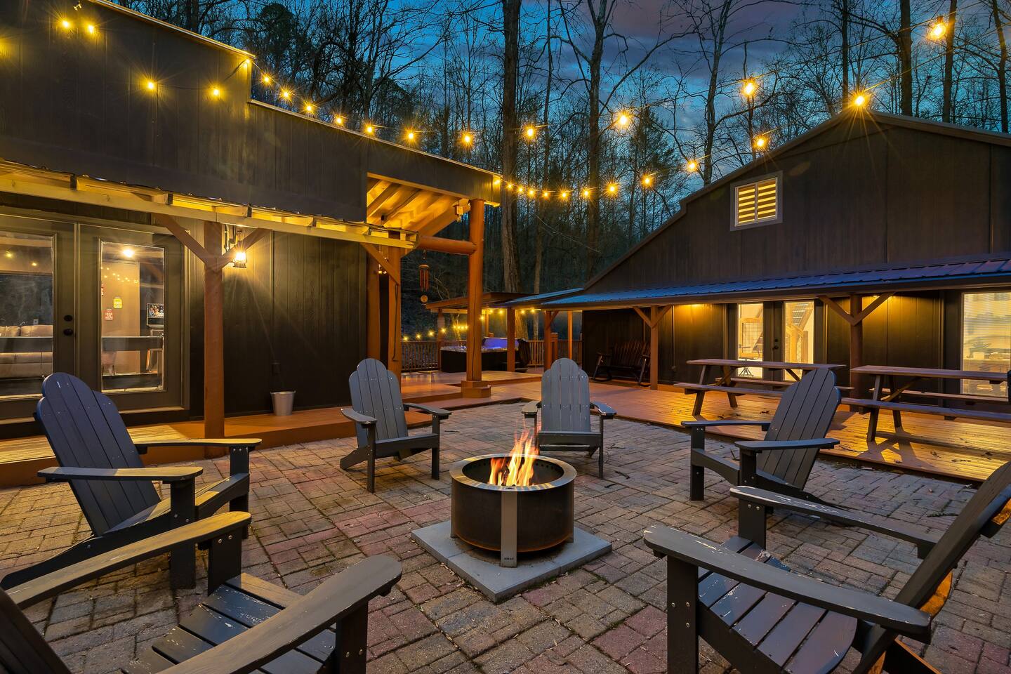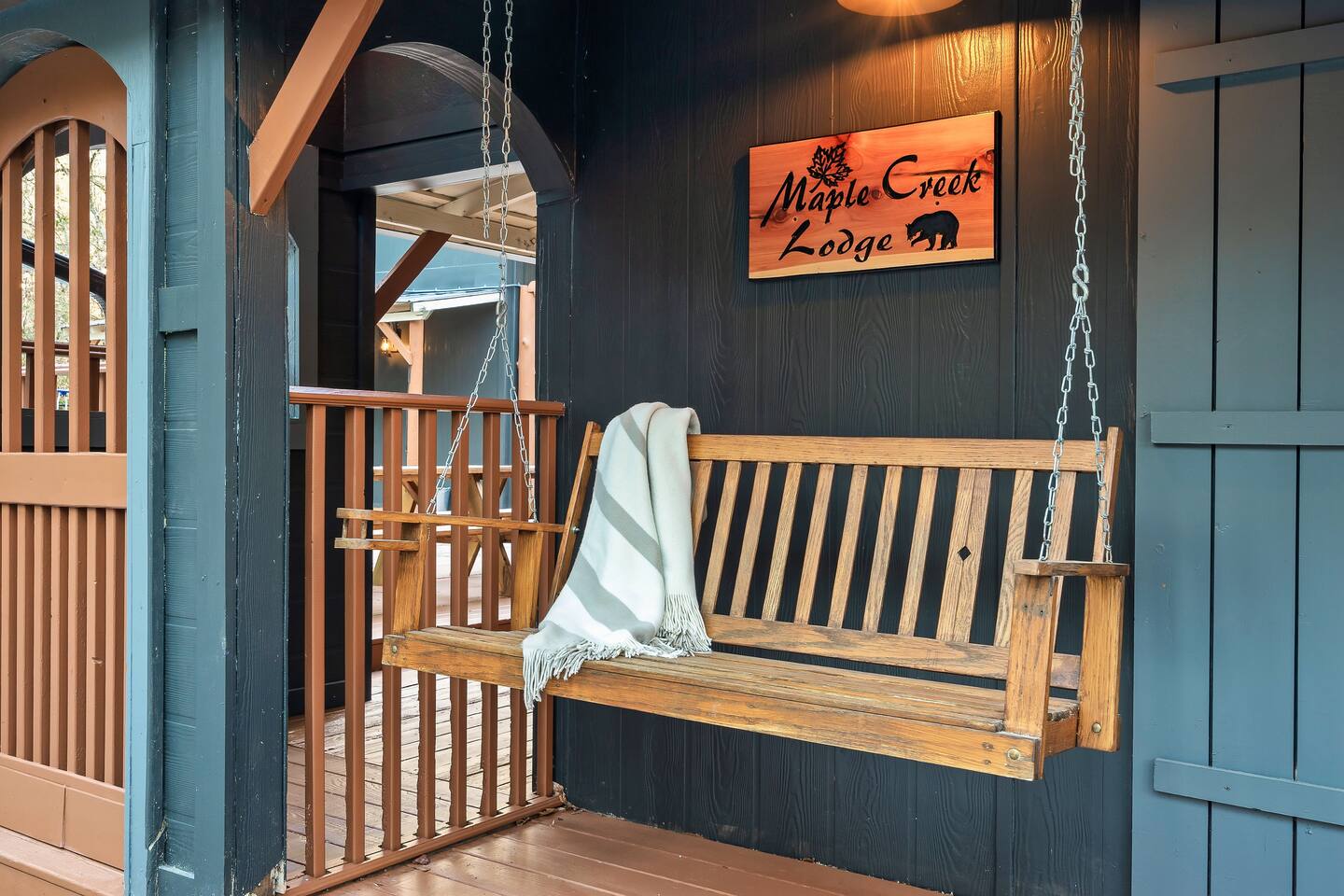 🍁 Welcome to Maple Creek Lodge! 🍁 Maple Creek Lodge is a private, updated cabin with plenty of amenities for the whole family to enjoy. The land also features a serene and peaceful private section of a natural creek flowing year-round. Although there is a neighbor on the right side of the property, their house faces the back of the cabin. Your privacy won't be compromised. ➡️ ENTERTAINMENT 🏊 Private 6 Seater Hot Tub with Lounger in Covered Area 🔥 Outdoor Fire Pit (BYO Firewood) ♨️ Park-Style Grill (BYO Charcoal) 🛝 Swing Set 🕹️ 6 Arcade Machines 🎲 Board Games 🎱 Pool Table 🏒 2-in-1 Air Hockey Table / 🏓 Ping Pong 📺 Smart TVs 📶 High-speed Fiber Wi-Fi (1 Gig) ➡️ LIVING AREA 📺 55" Smart Roku TV 🔥 Electric Fireplace 🛋️ Comfortable Leather Couch 🍼 Pack 'n Play & High chair ✨ Open Space to Kitchen and Dining Areas 🍽️ Dining area seats 8 at the table and 2 at the breakfast bar. ➡️ KITCHEN 👨🍳 Fully equipped with pots, pans, dishware, and cooking utensils ☕ Coffee Station ✨ Keurig Coffee Machine ✨ Drip Coffee Machine ✨ Pour Over ✨ Italian Coffee Machine ✨ We do provide a starter kit of K-Cups, Instant Coffee, Ground Coffee, and Sugar. 🧺 Washer/Dryer in Laundry Room 🥌 Iron & Iron board ➡️ BEDROOM 1 (Master Bedroom) 🛏️ Queen Bed 💼 Desk 👕 Closet with hangers 🧳 Luggage Rack ♨️ Space Heater 🛁 Full Bath ➡️ BEDROOM 2 🛏️ Queen over Queen Bunk Bed 💼 Desk 👕 Closet with hangers 🧳 Luggage Rack ♨️ Space Heater ➡️ BEDROOM 3 (Upstairs) 🛏️ Queen Bed 💼 Desk 👕 Closet with hangers 🧳 Luggage Rack ♨️ Space Heater ➡️ Loft 🛏️ Twin pull out bed (Becomes a Double Twin) ➡️ BATHROOMS 🛁 Large guest bathroom with large tub and stand-alone shower 🛁 Shower/Tub combo in Master Bathroom ✨ Hair Dryer ✨ Essentials