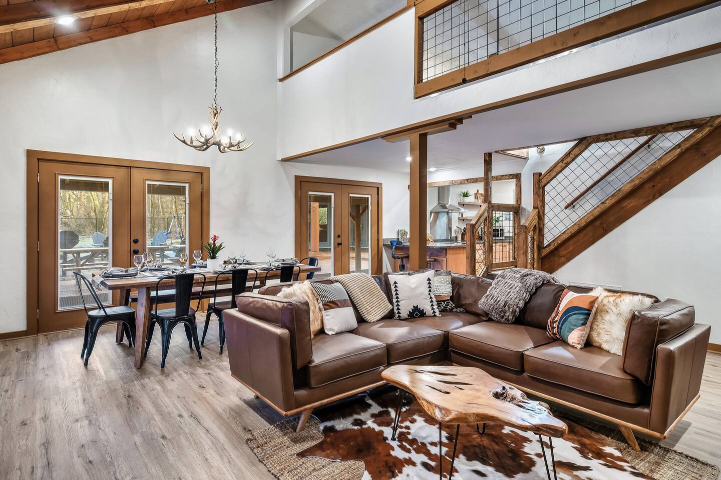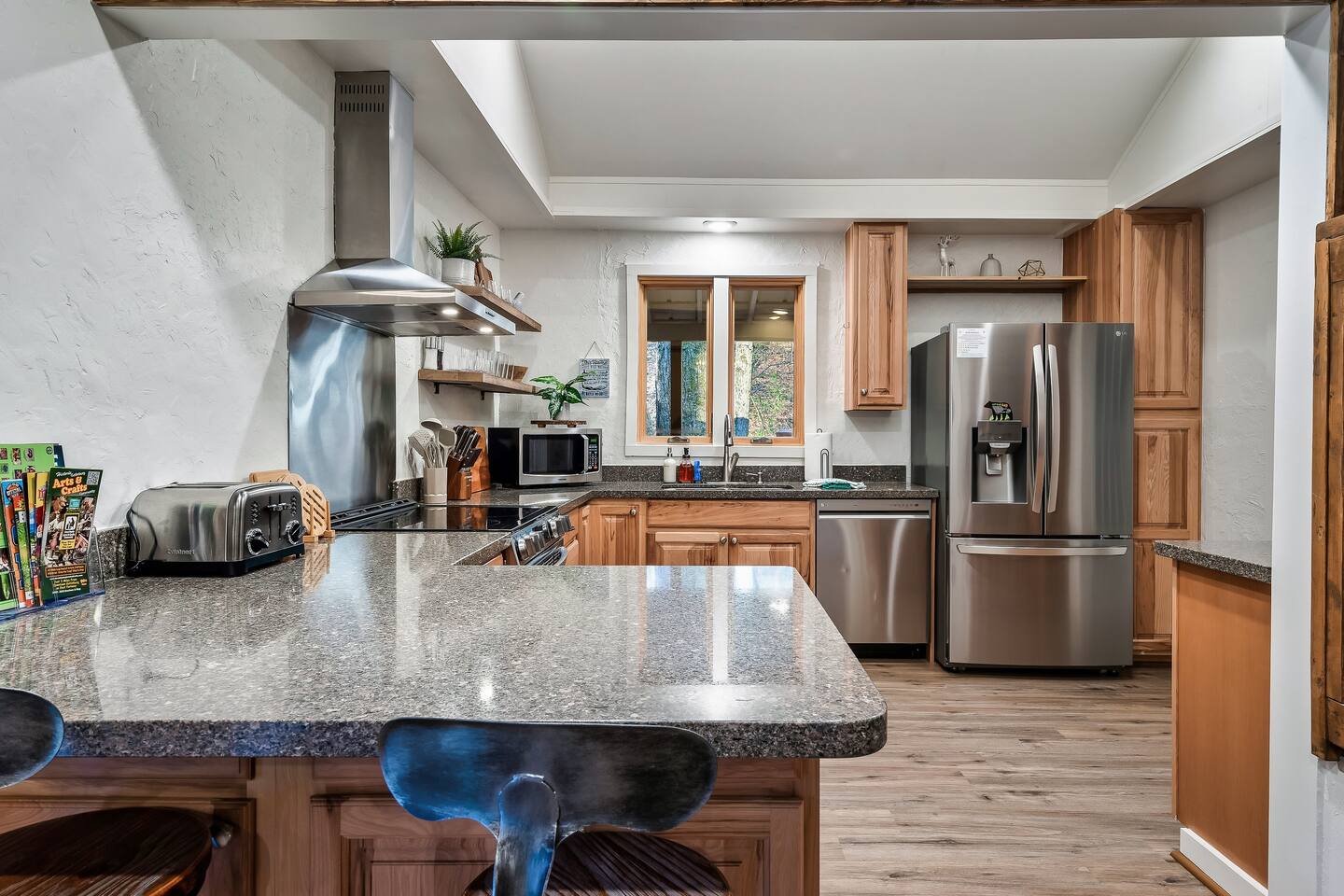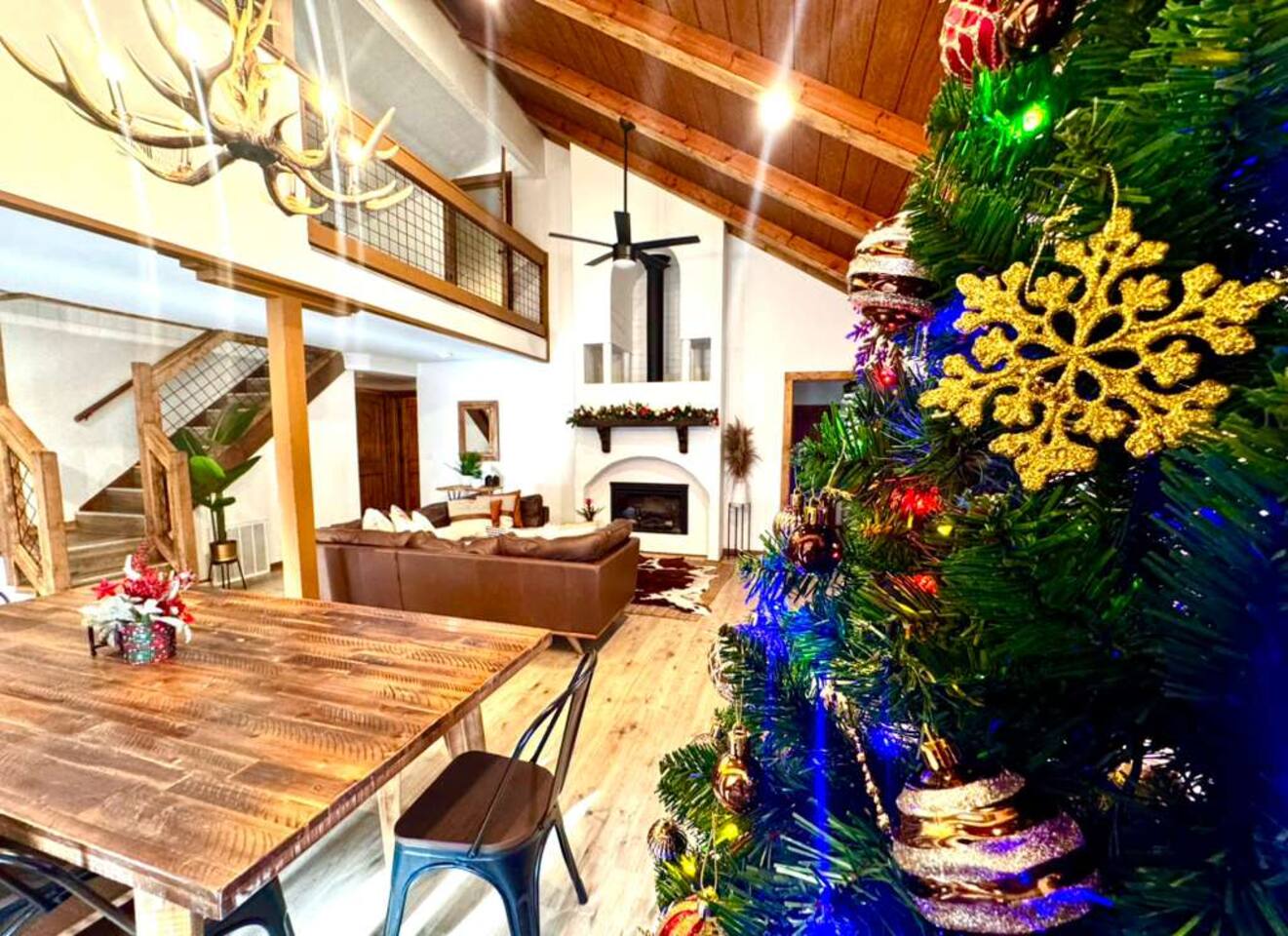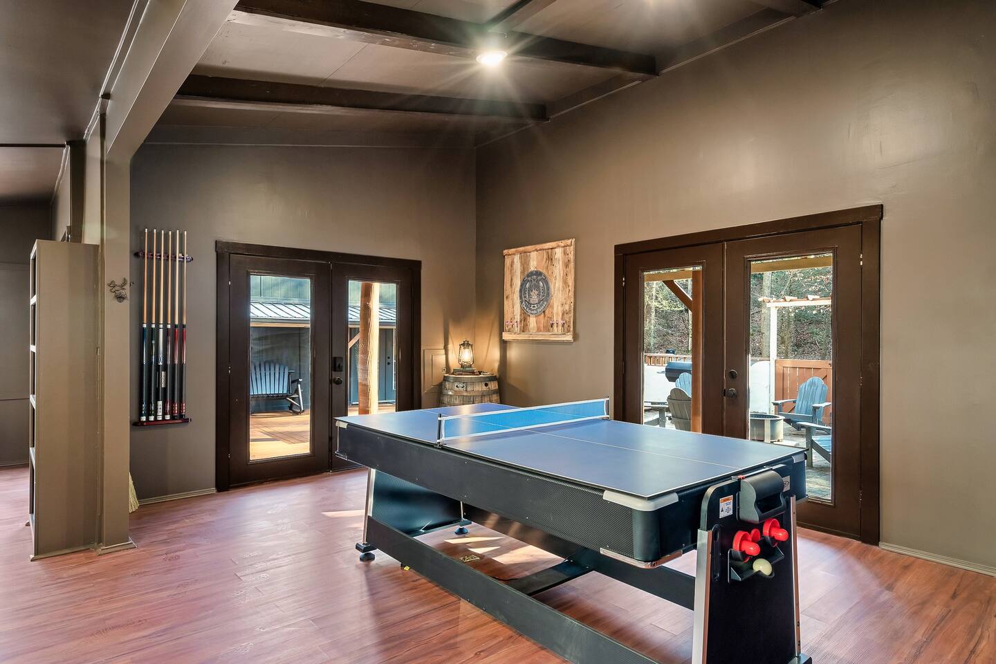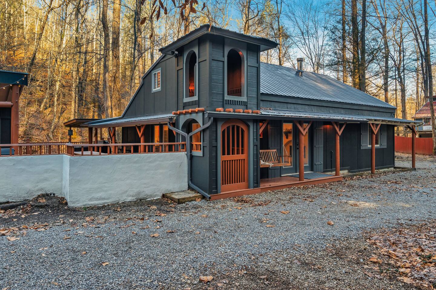 🍁 Welcome to Maple Creek Lodge! 🍁 Maple Creek Lodge is a private, updated cabin with plenty of amenities for the whole family to enjoy. The land also features a serene and peaceful private section of a natural creek flowing year-round. Although there is a neighbor on the right side of the property, their house faces the back of the cabin. Your privacy won't be compromised. ➡️ ENTERTAINMENT 🏊 Private 6 Seater Hot Tub with Lounger in Covered Area 🔥 Outdoor Fire Pit (BYO Firewood) ♨️ Park-Style Grill (BYO Charcoal) 🛝 Swing Set 🕹️ 6 Arcade Machines 🎲 Board Games 🎱 Pool Table 🏒 2-in-1 Air Hockey Table / 🏓 Ping Pong 📺 Smart TVs 📶 High-speed Fiber Wi-Fi (1 Gig) ➡️ LIVING AREA 📺 55" Smart Roku TV 🔥 Electric Fireplace 🛋️ Comfortable Leather Couch 🍼 Pack 'n Play & High chair ✨ Open Space to Kitchen and Dining Areas 🍽️ Dining area seats 8 at the table and 2 at the breakfast bar. ➡️ KITCHEN 👨🍳 Fully equipped with pots, pans, dishware, and cooking utensils ☕ Coffee Station ✨ Keurig Coffee Machine ✨ Drip Coffee Machine ✨ Pour Over ✨ Italian Coffee Machine ✨ We do provide a starter kit of K-Cups, Instant Coffee, Ground Coffee, and Sugar. 🧺 Washer/Dryer in Laundry Room 🥌 Iron & Iron board ➡️ BEDROOM 1 (Master Bedroom) 🛏️ Queen Bed 💼 Desk 👕 Closet with hangers 🧳 Luggage Rack ♨️ Space Heater 🛁 Full Bath ➡️ BEDROOM 2 🛏️ Queen over Queen Bunk Bed 💼 Desk 👕 Closet with hangers 🧳 Luggage Rack ♨️ Space Heater ➡️ BEDROOM 3 (Upstairs) 🛏️ Queen Bed 💼 Desk 👕 Closet with hangers 🧳 Luggage Rack ♨️ Space Heater ➡️ Loft 🛏️ Twin pull out bed (Becomes a Double Twin) ➡️ BATHROOMS 🛁 Large guest bathroom with large tub and stand-alone shower 🛁 Shower/Tub combo in Master Bathroom ✨ Hair Dryer ✨ Essentials